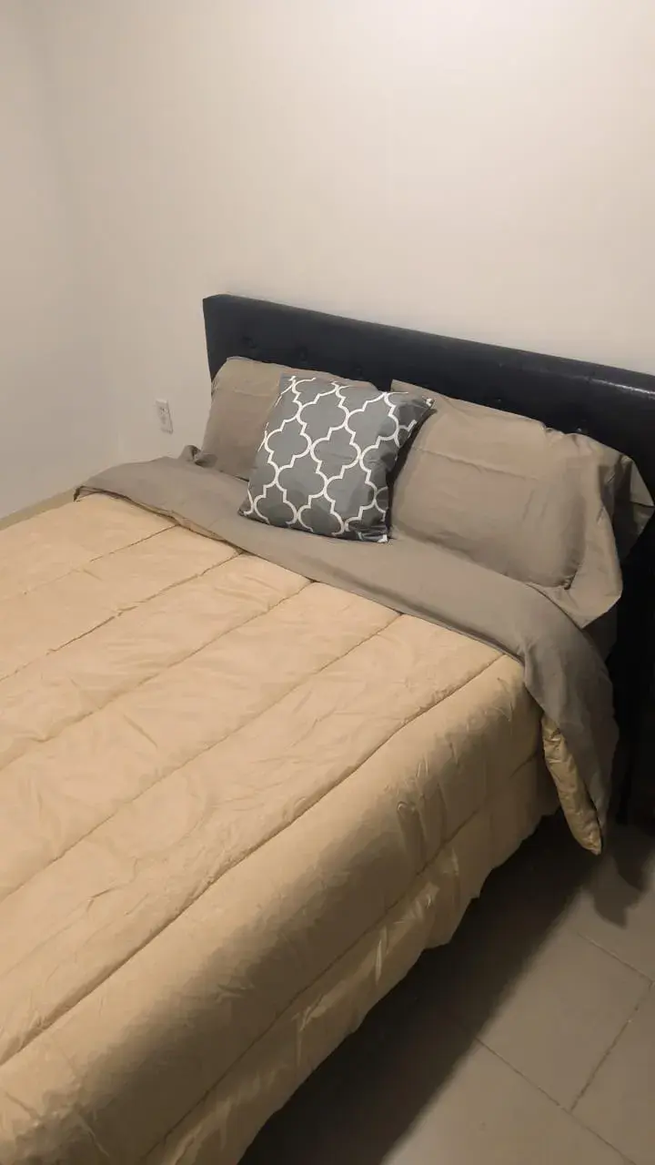 Departamento funcional con espacios bien distribuidos, ideal para quienes buscan comodidad y practicidad. Cuenta con cocina con barra, áreas sociales integradas y patio de servicio independiente. Distribución 🛏 2 recámaras 🛁 1 baño completo 🛋 Sala 🍽 Comedor 🍳 Cocina con barra / isla Espacios adicionales 🧺 Patio de servicio techado Área de lavado con lavadero Equipamiento Cocina con gabinetes Barra de cocina Espacio para refrigerador y estufa Acabados Piso cerámico Muros en tonos neutros Closets en recámaras Ventanas con iluminación natural